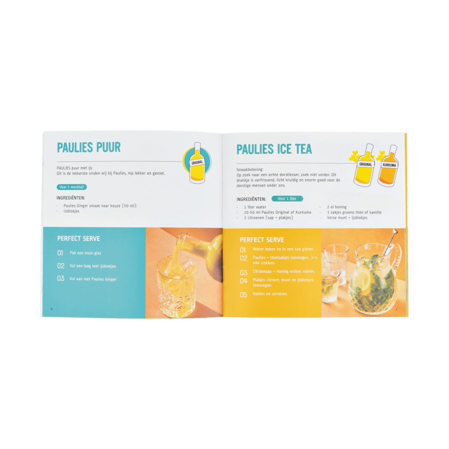 Heerlijke recepten warm en koud in mooi vormgegeven boekje. Van alcoholvrije cocktails tot warme dranken en recepten, allemaal met een van onze Paulies smaken als basis.